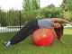1. Firmer body. Lie face down with your stomach on the ball, stretch your legs back with your feet on the floor and also support your hands on the floor on the other side of the ball. Move your left arm forwards while stretching your right leg backwards. The rest of the body should be kept stiff so as not to lose balance. Hold on for two to three minutes and then try with the other side. 2. Flat abdomen. Sit on the ball with your feet either side. Slide your feet forward while allowing the ball to slide backwards until your back is fully supported by the ball. In this position, bend your legs until they form a right angle, put your hands behind your neck and lift the upper part of the body as much as possible. Keep your back straight. Repeat 10 times and rest. 3. Relaxed back. Lie face down on the ball, and allow the ball to bear your full weight. Relax your neck by moving your head towards the floor and also relax the legs, arms and back. Hold for 30 seconds.