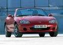 Its classic style does not change. The relatively long bonnet, the short rear end, its low height, the long wheelbase and the large tyres combine to create a timeless appearance. The current version is a convertible with gentle lines that are clearly in the Mazda style, with a large air intake, attractive headlights and its characteristic bonnet. It is now available, for the revamped version, with 16��five spoke alloy wheels (only for Sportive 1.8 litre) which, together with a lower design on the door panels, emphasise the elegant sports nature of the car�s silhouette.
